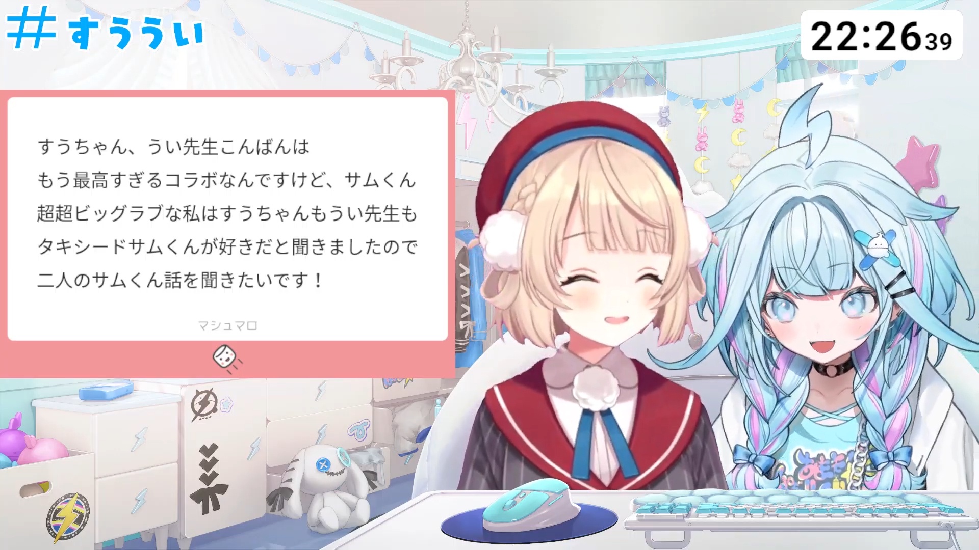 配信が始まると、オープニングからすうちゃんの元気な声が響きわたり、すぐに雰囲気が盛り上がりました。二人の仲良しぶりが伝わってくる楽しいトークは、リスナーを一気に引き込む要素満載です。オタクならではの話題や、お互いの好きな作品について語る場面では、笑いが止まらない瞬間もありました。