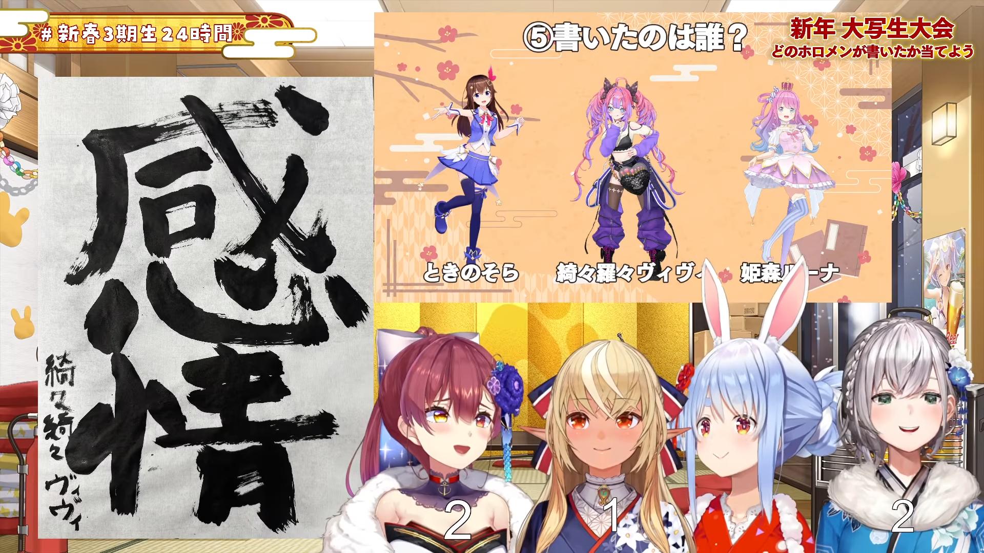 一方で、ちはは「邁進」と書いていて、難しい字なのにさすがだなと感心しました。ちはのように年齢を重ねるごとに、ますます成長していく人もいれば、ヴィヴィやニコのように失敗を楽しむ姿もあって、書初めは毎年楽しい瞬間ですよね!失敗を笑える余裕、そしてお互いの個性を楽しんで、リスナーの皆さんも新年のスタートを全力で味わいましょう!