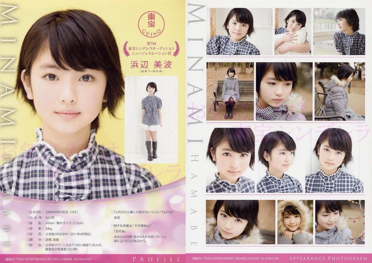 10歳の時に「第7回東宝シンデレラオーディション」のニュージェネレーション賞を受賞し芸能界入りした浜辺。