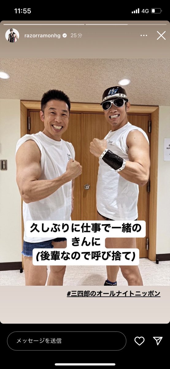 レイザーラモンHGはきんにくんのことを、後輩なので「きんに」と呼んでいる