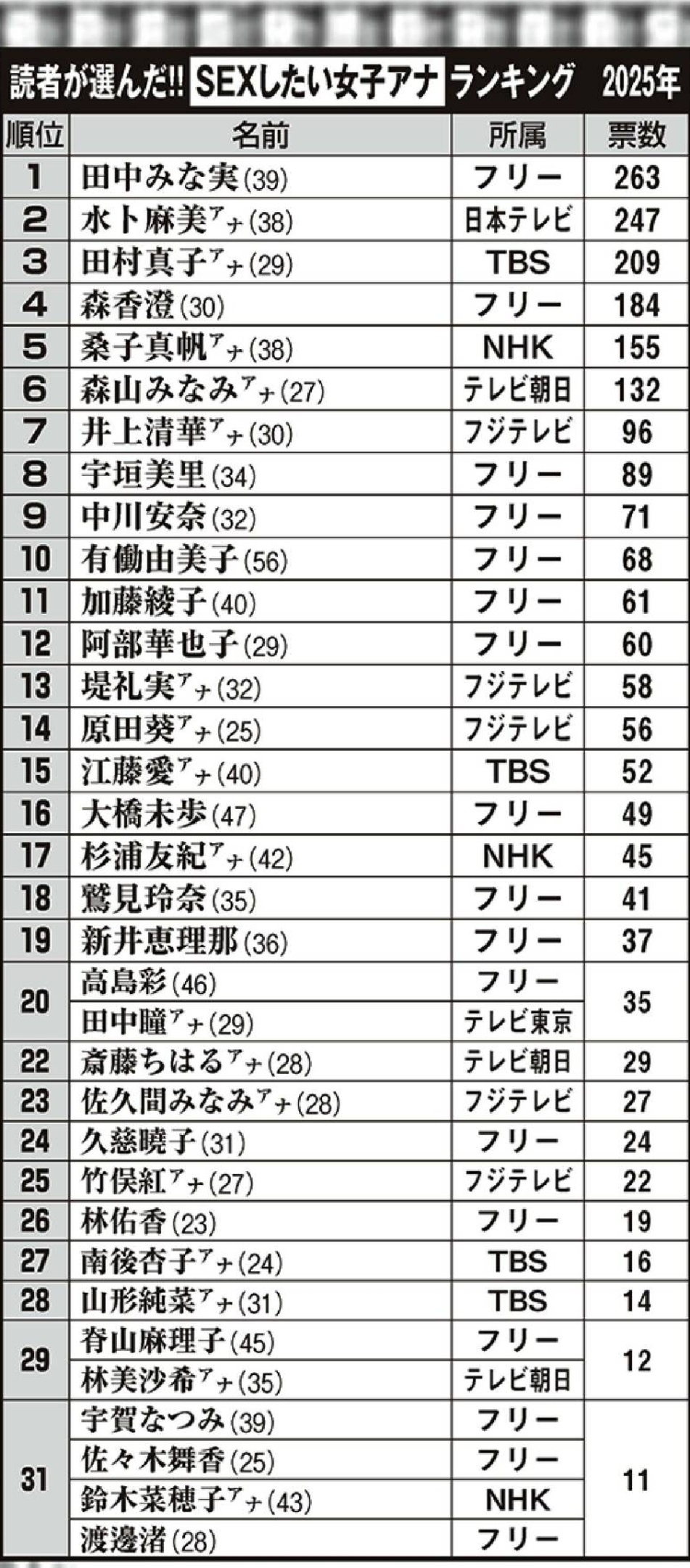 有働由美子で誰かがふざけてるランキングとすぐ分かる